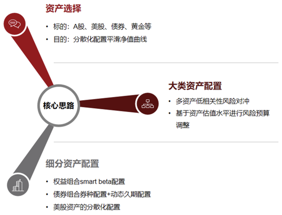 多资产配置,重点跟踪A股、美股、黄金、利率债等大类资产的估值水平,动态调整风险预算,充分利用多资产低相关性的特征,通过多元资产的风险对冲实现组合回撤的控制目标。